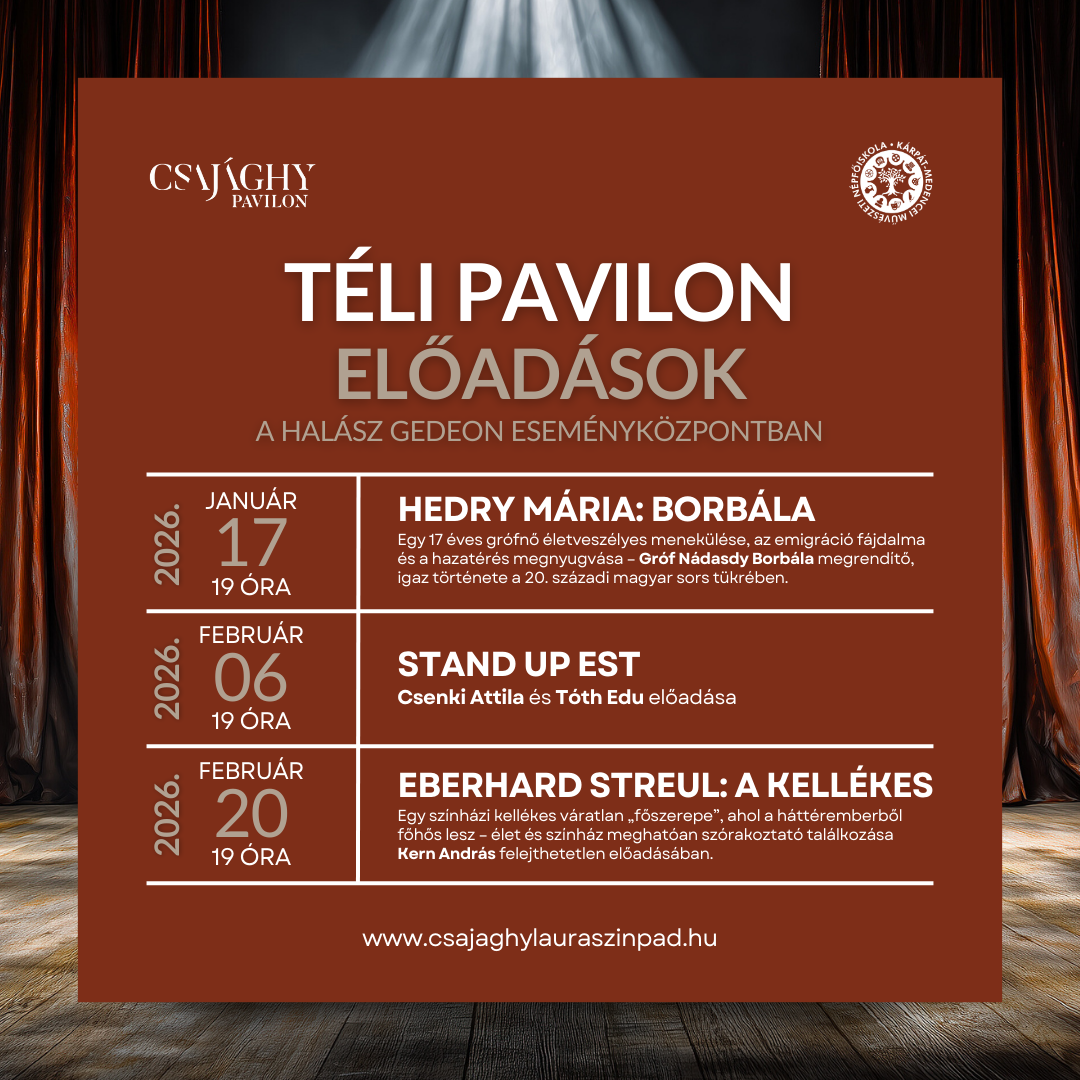Fedezzék fel változatos programjainkat, találkozzanak kiváló művészekkel, és töltsenek velünk felejthetetlen estéket a Csajághy Laura Szabadtéri Színpad téli előadásain.