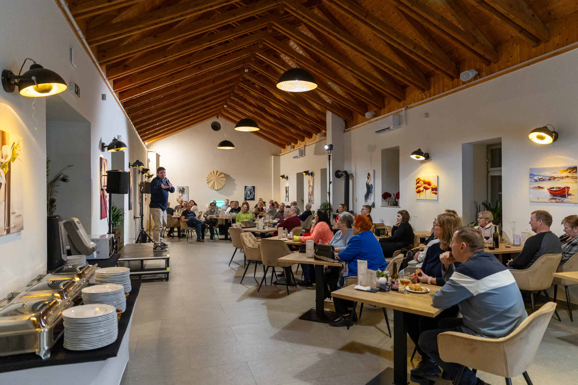 Február 6-án este új helyszínen, a Kastélykert Étterem falai között rendeztük meg stand-up estünket, ahol a humoré volt a főszerep. A hangulatos környezet és a telt házas közönség már az első percekben megalapozta az est különleges atmoszféráját.